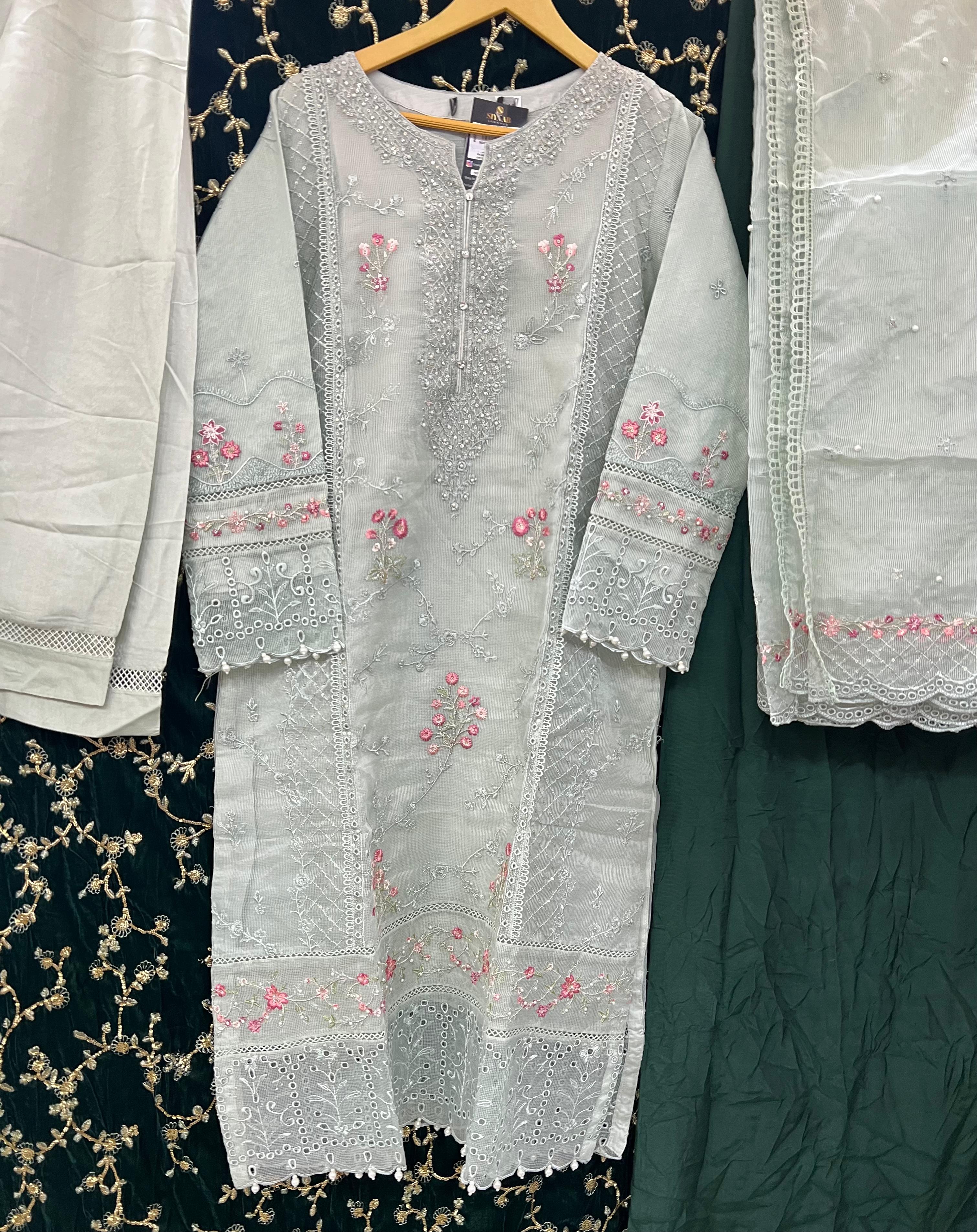HEAVILY EMBROEDERED COTTON NET KAMEEZ