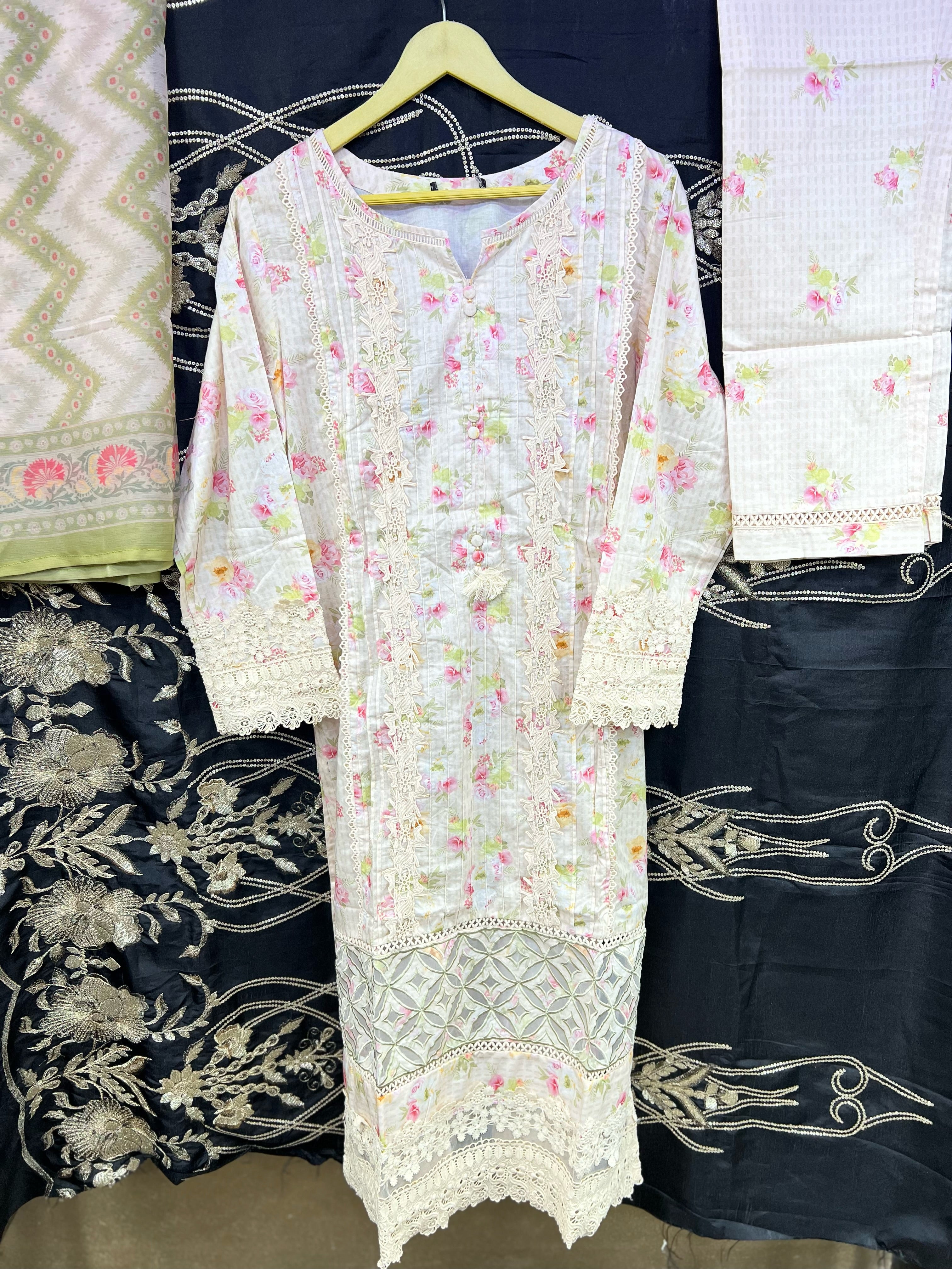 HEAVILY EMBROIDERED LAWN CUTWORK PRINTED KAMEEZ