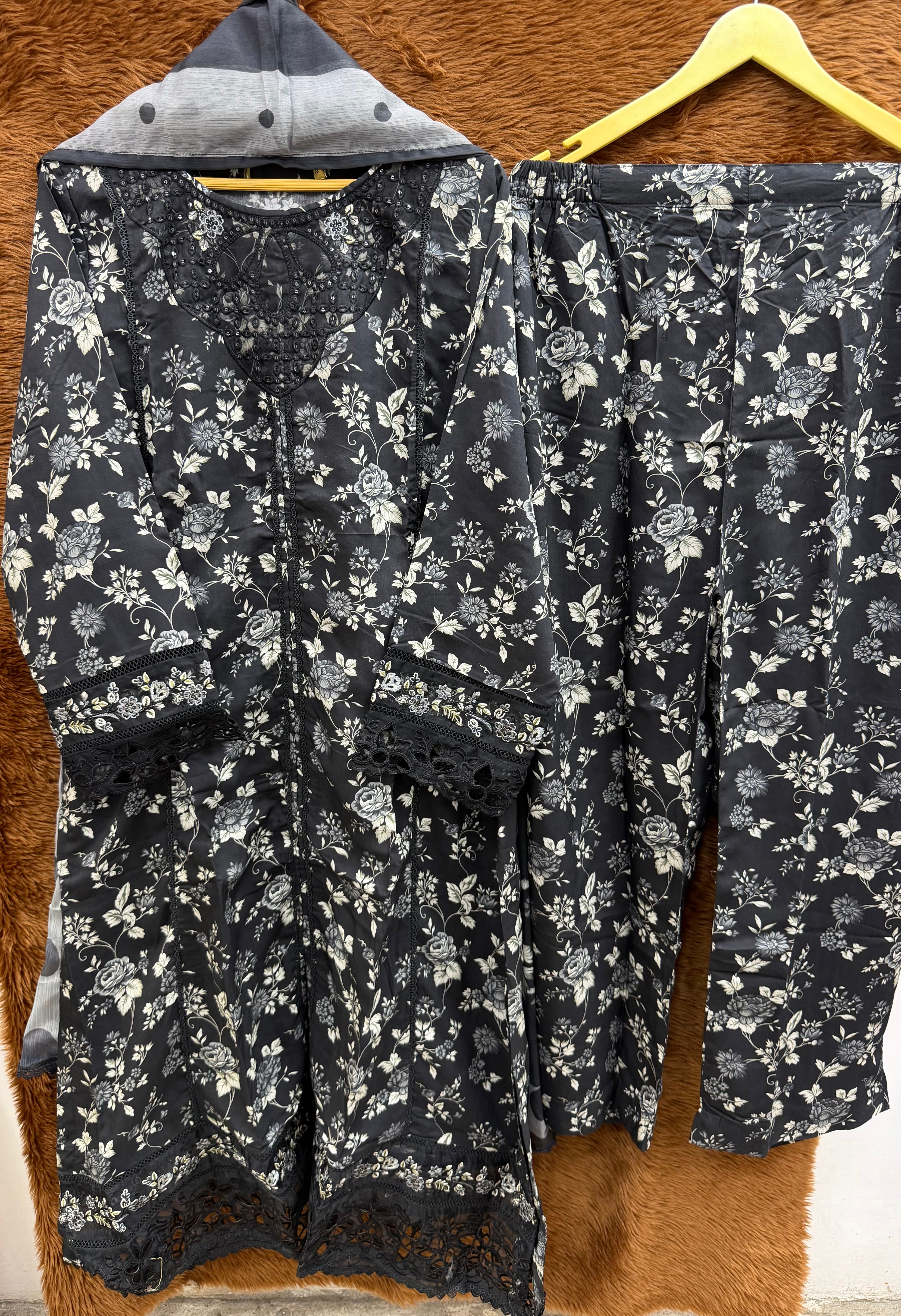 HEAVILY EMBROIDERED VISCOSE LAWN KAMEEZ WITH CUTWORK