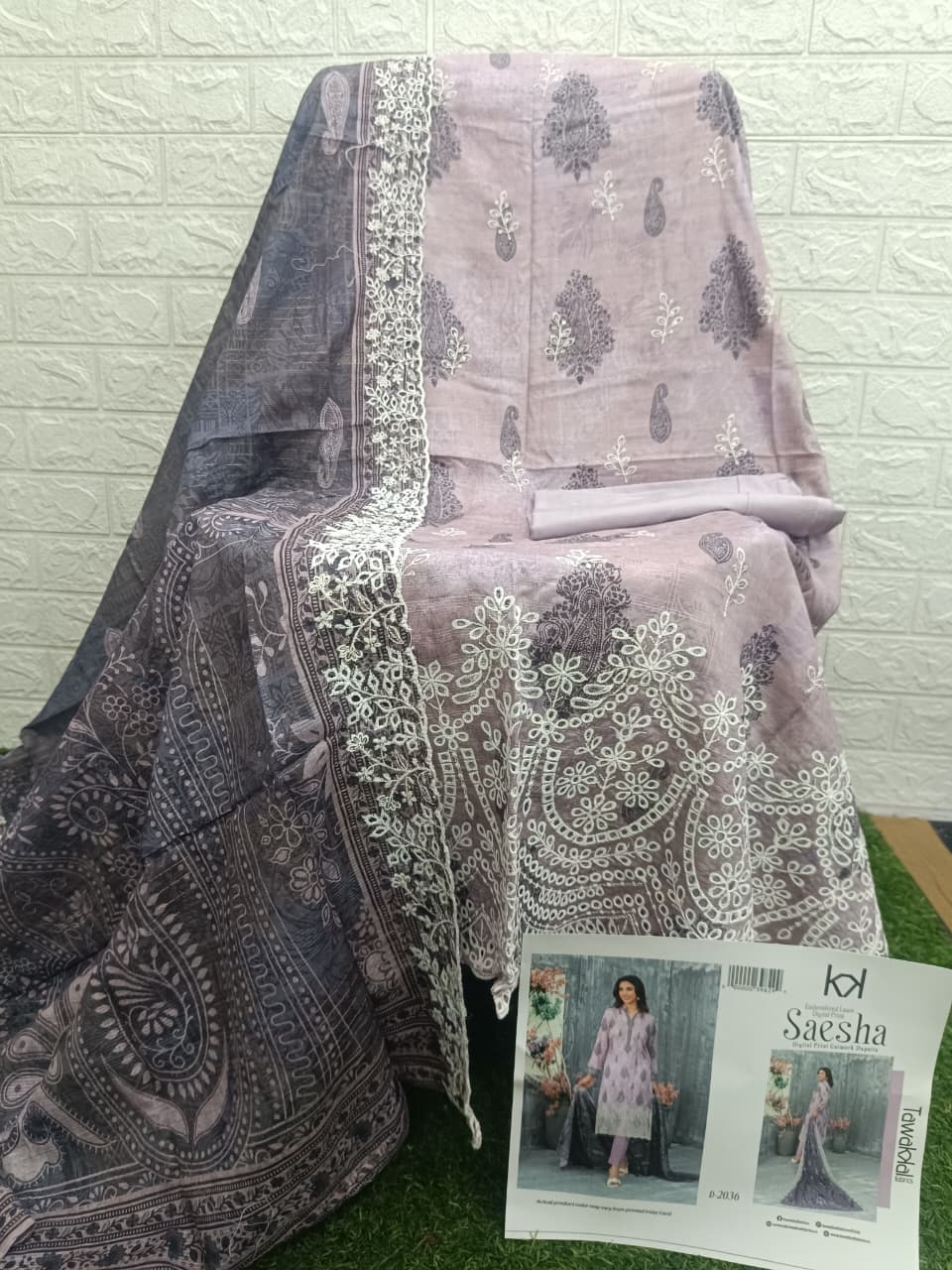- Un-Stitched Embroidered Digital Printed Slub Lawn Shirt Designs with