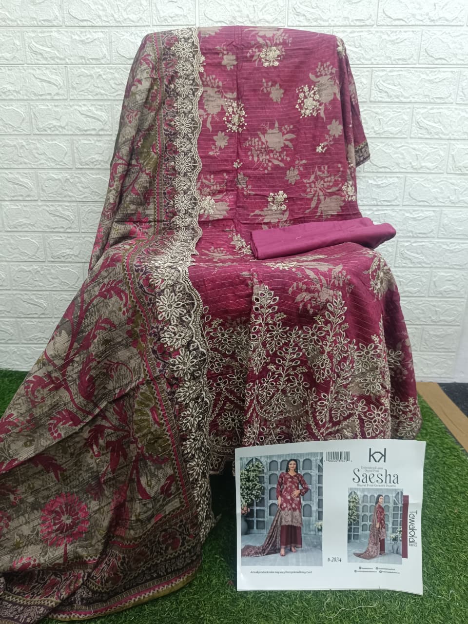 3 Piece Un-Stitched Collection By Tawakkal Fabrics, Attractive & Elegant Lawn Collection comes with: