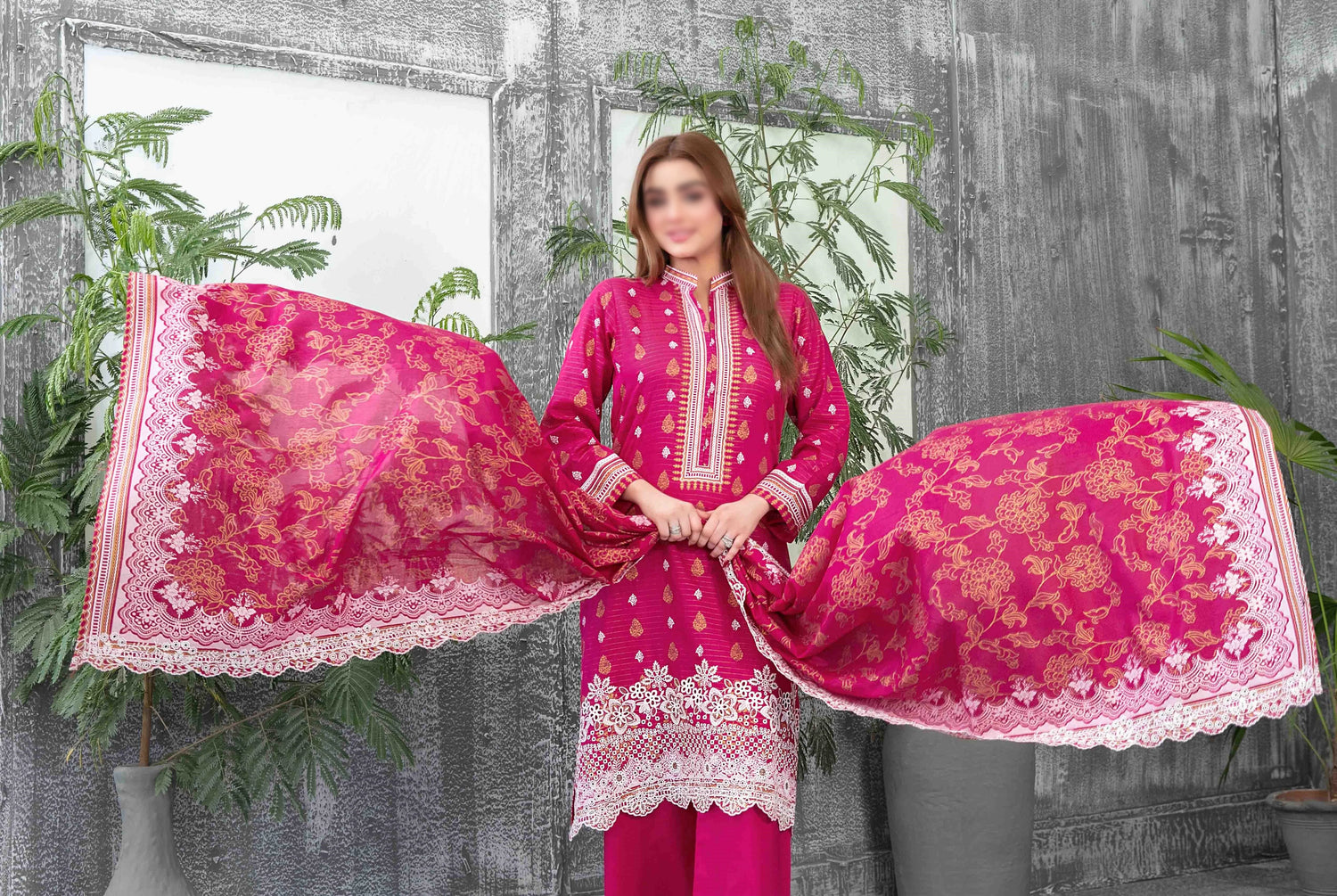 Sameeha Embroidered Paste Print Cutwork Dupatta By Tawakkal Fabrics Un-Stitched 3 Piece Suit