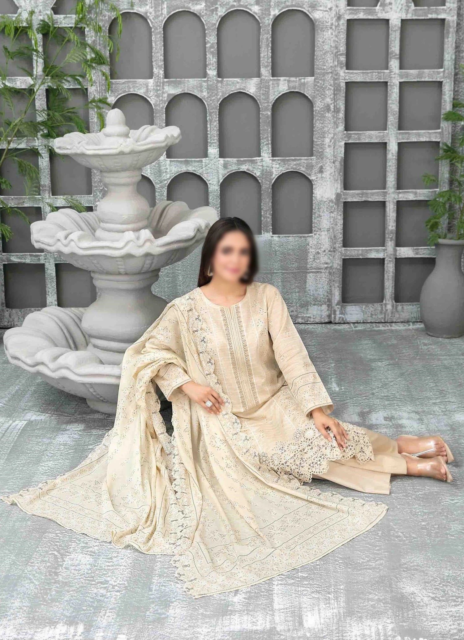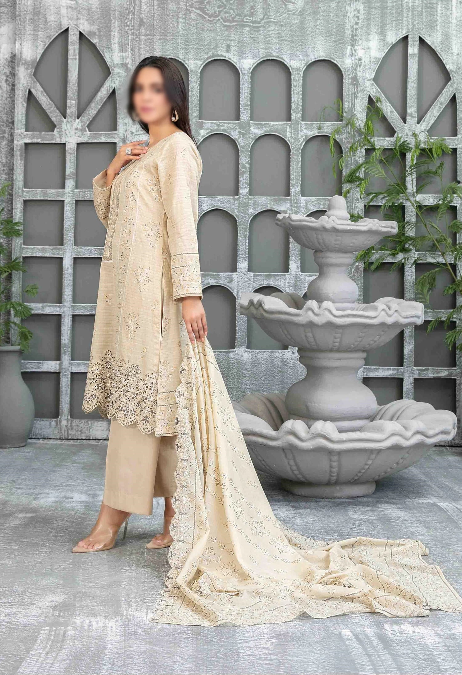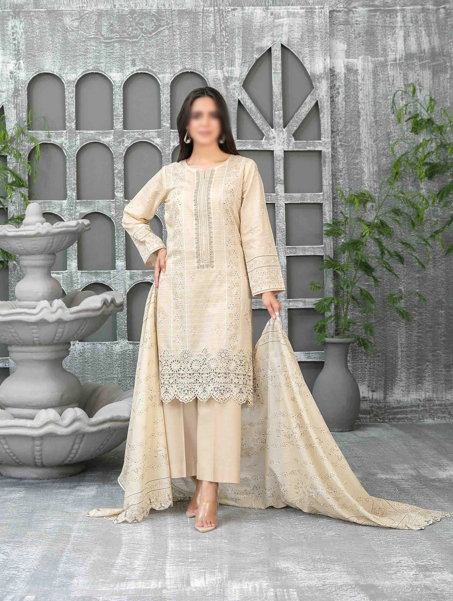 Sameeha Embroidered Paste Print Cutwork Dupatta By Tawakkal Fabrics Un-Stitched 3 Piece Suit