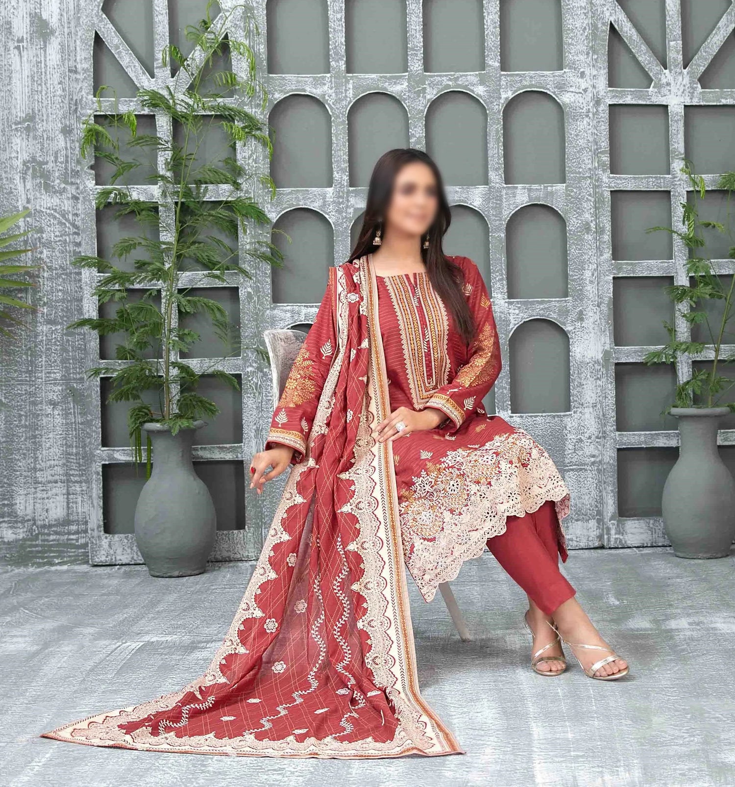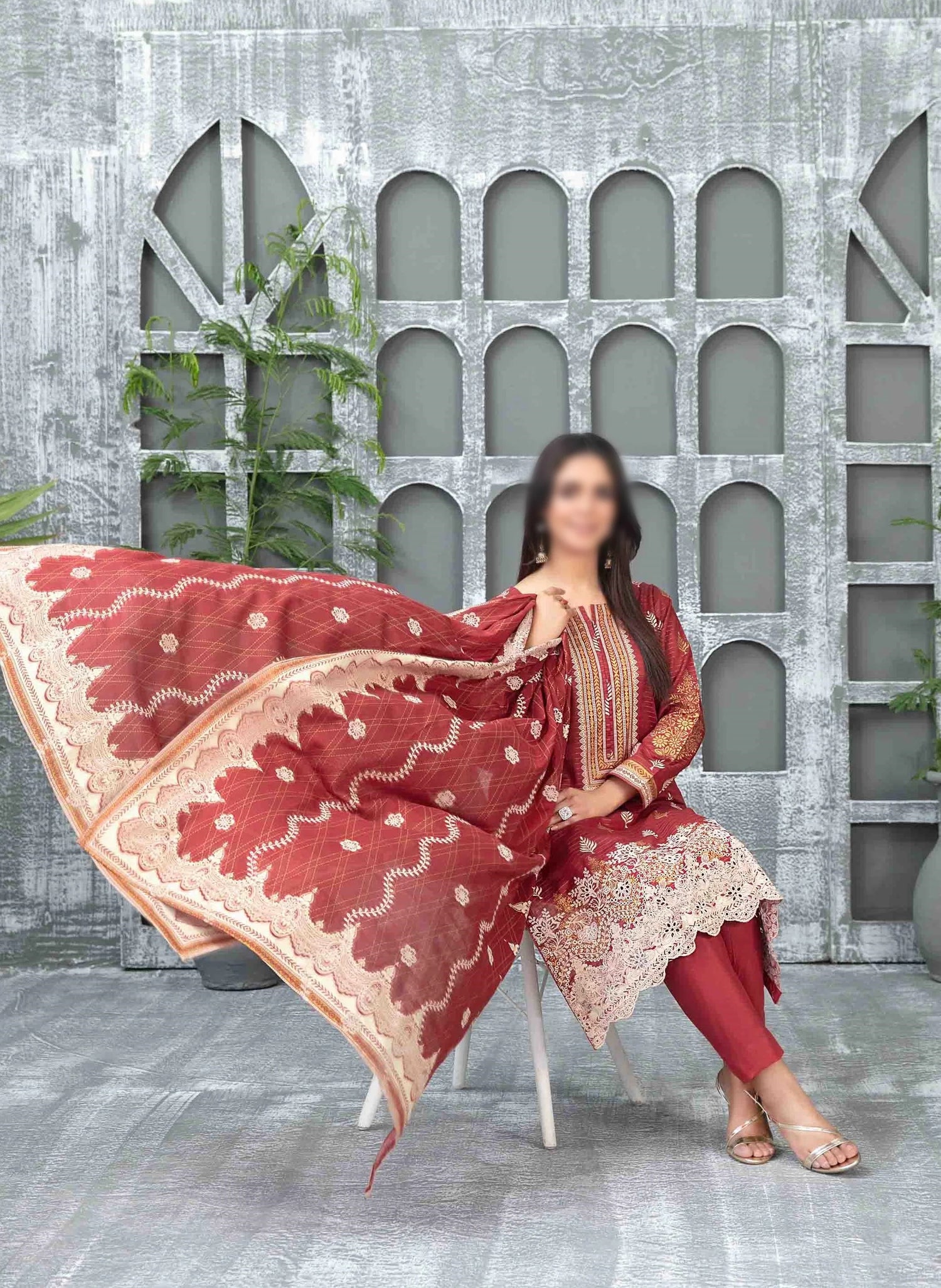 Sameeha Embroidered Paste Print Cutwork Dupatta By Tawakkal Fabrics Un-Stitched 3 Piece Suit