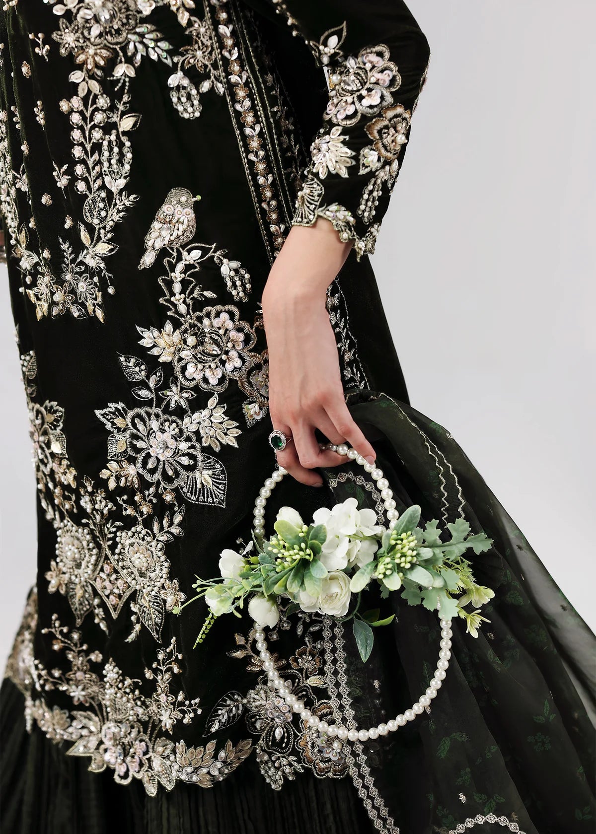 - Handwork & Embroidered Velvet Sleeves