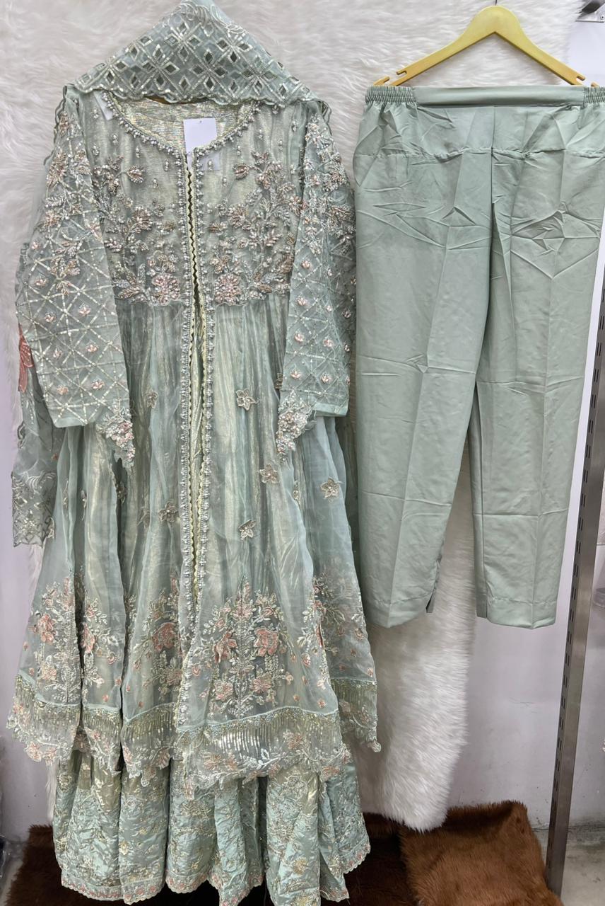 HEAVILY EMBROIDERED HANDWORK ORGANZA GOWN KAMEEZ/