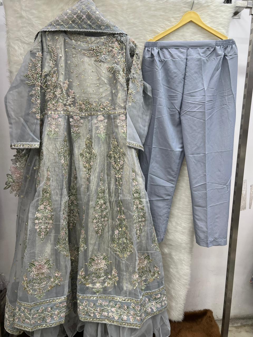 HEAVILY EMBROIDERED HANDWORK ORGANZA GOWN KAMEEZ/