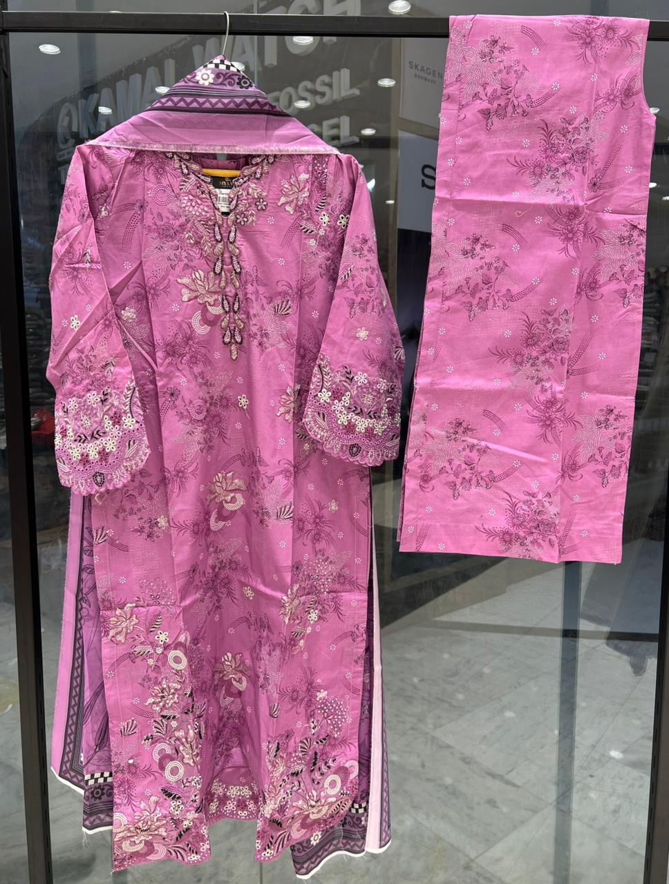 Dyed / embroidered lawn trouser.
