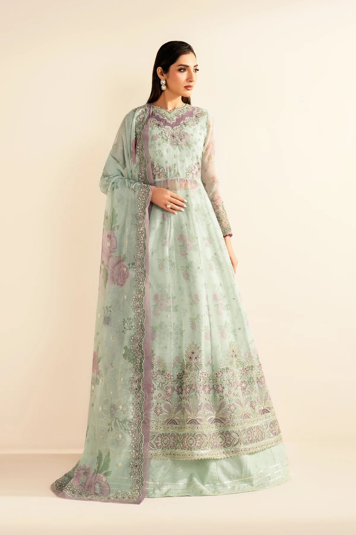 - Printed & Embroidered Chiffon Front
