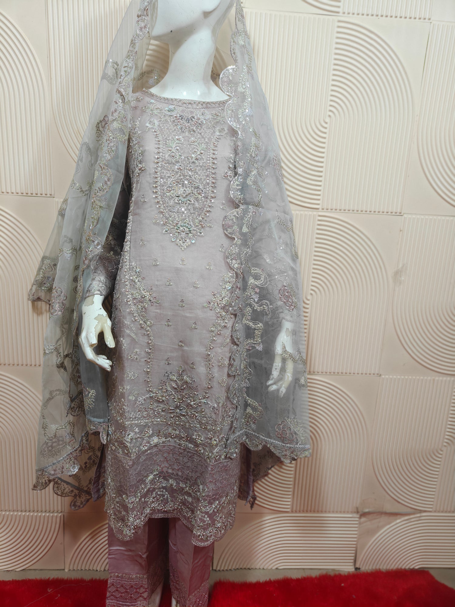 Surayya by Zoya Ahmad – Dusty Pink Embroidered Organza Ensemble (48” Length)