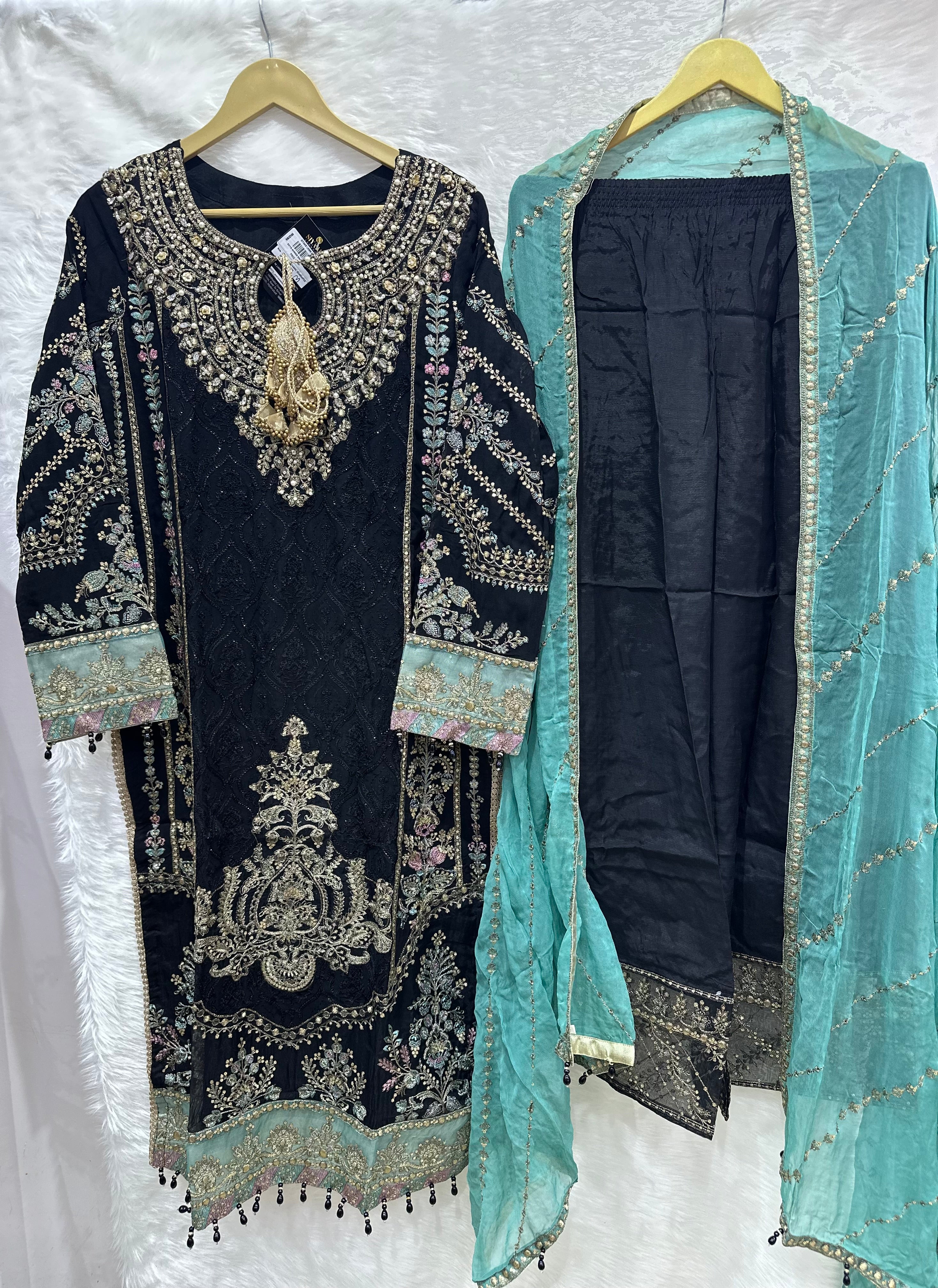 HEAVILY EMBROIDERED CHIFFON KAMEEZ