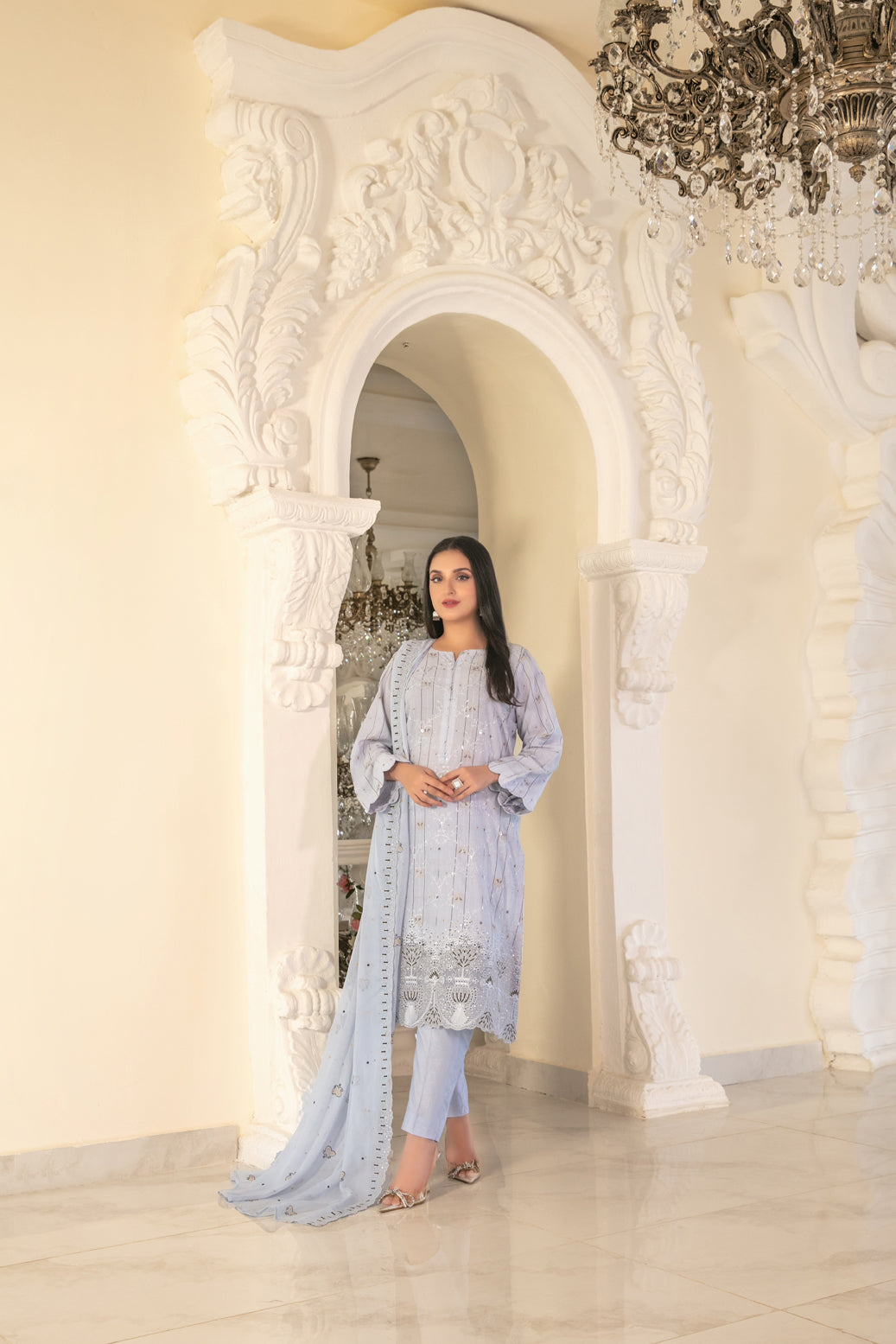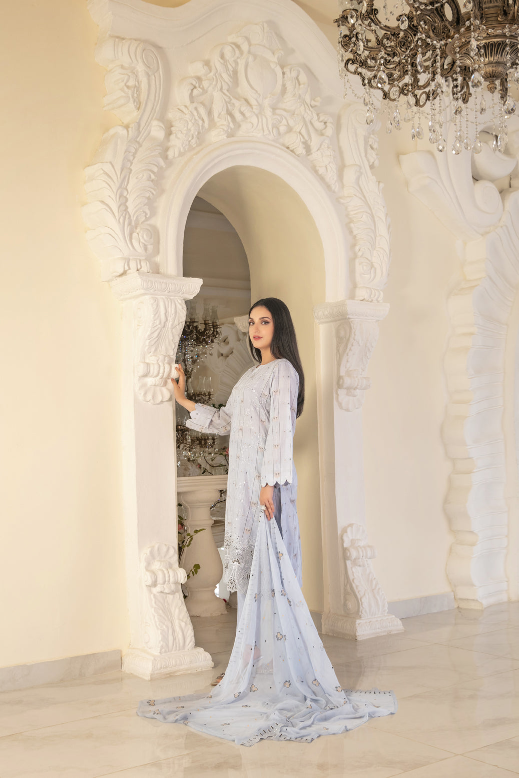 - Un-Stitched Jaal + Daman Embroidered Boti Broshia Lawn Shirt Designs with