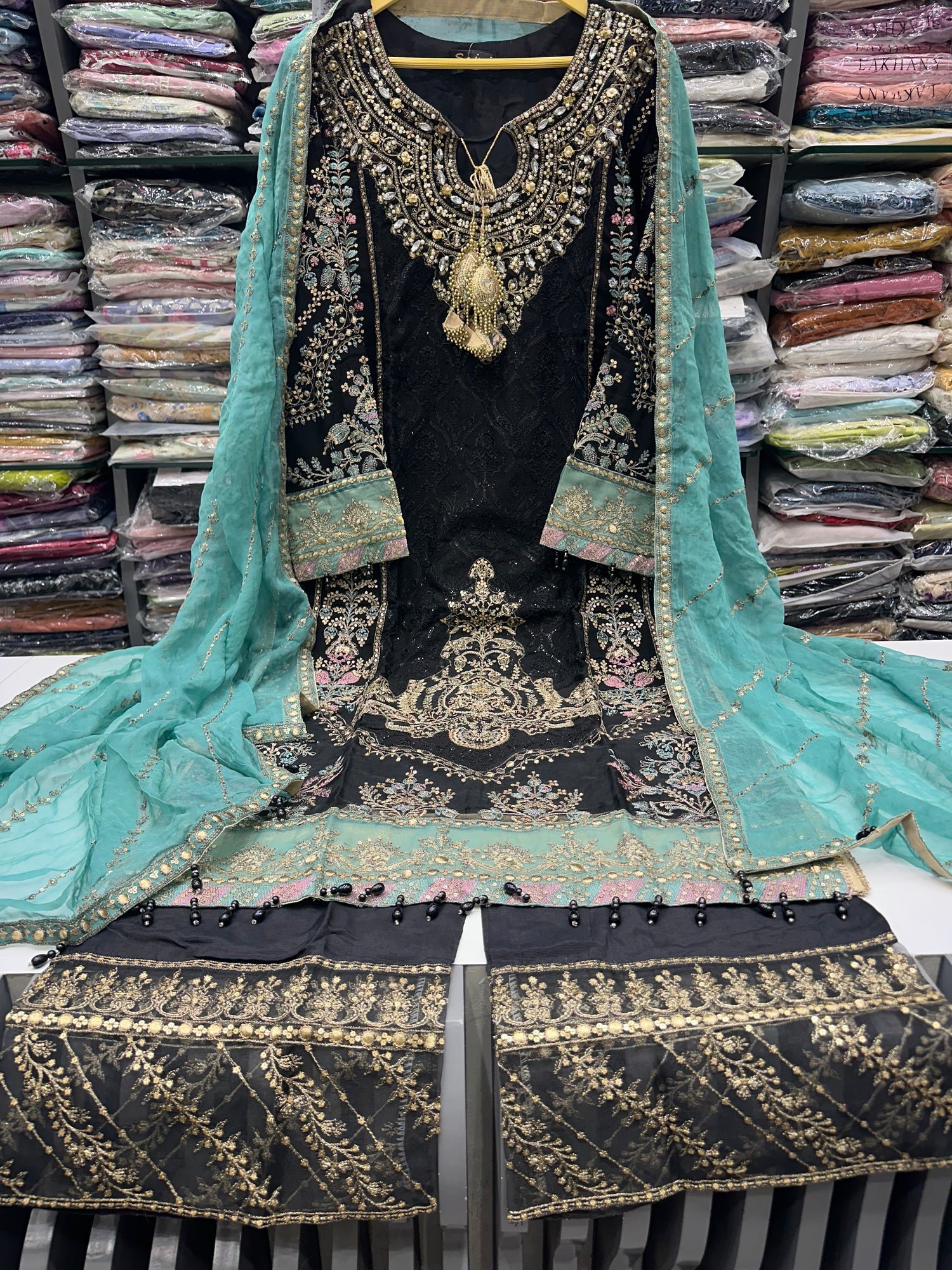 HEAVILY EMBROIDERED CHIFFON KAMEEZ