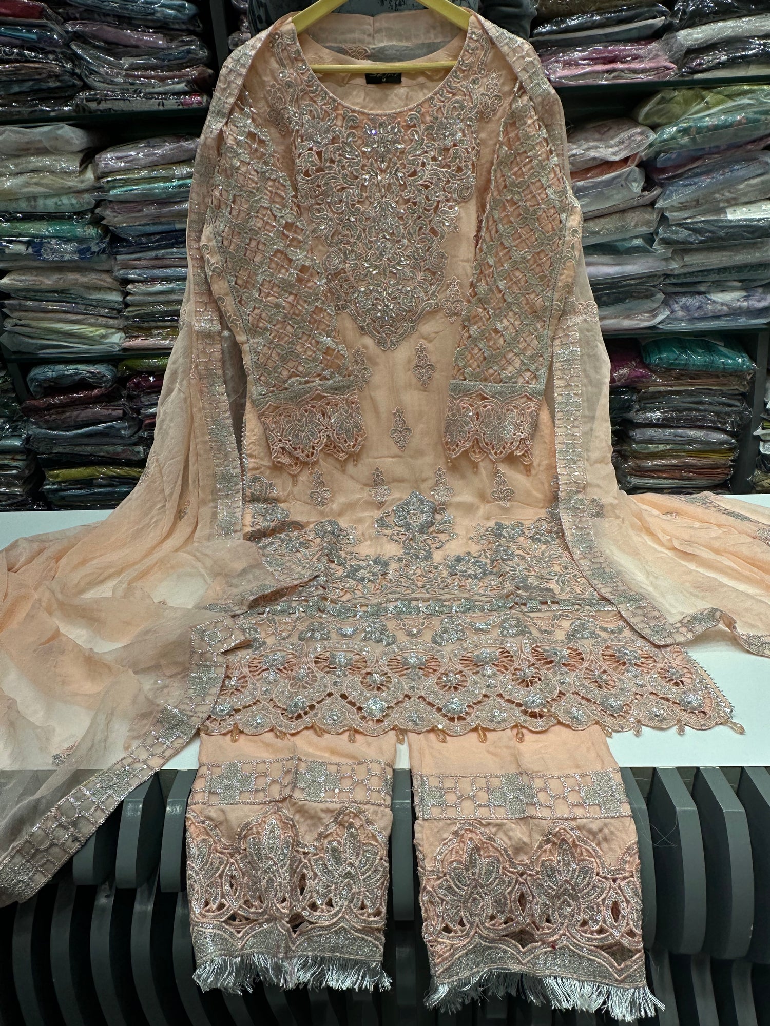 HEAVILY EMBROIDERED CHIFFON KAMEEZ
