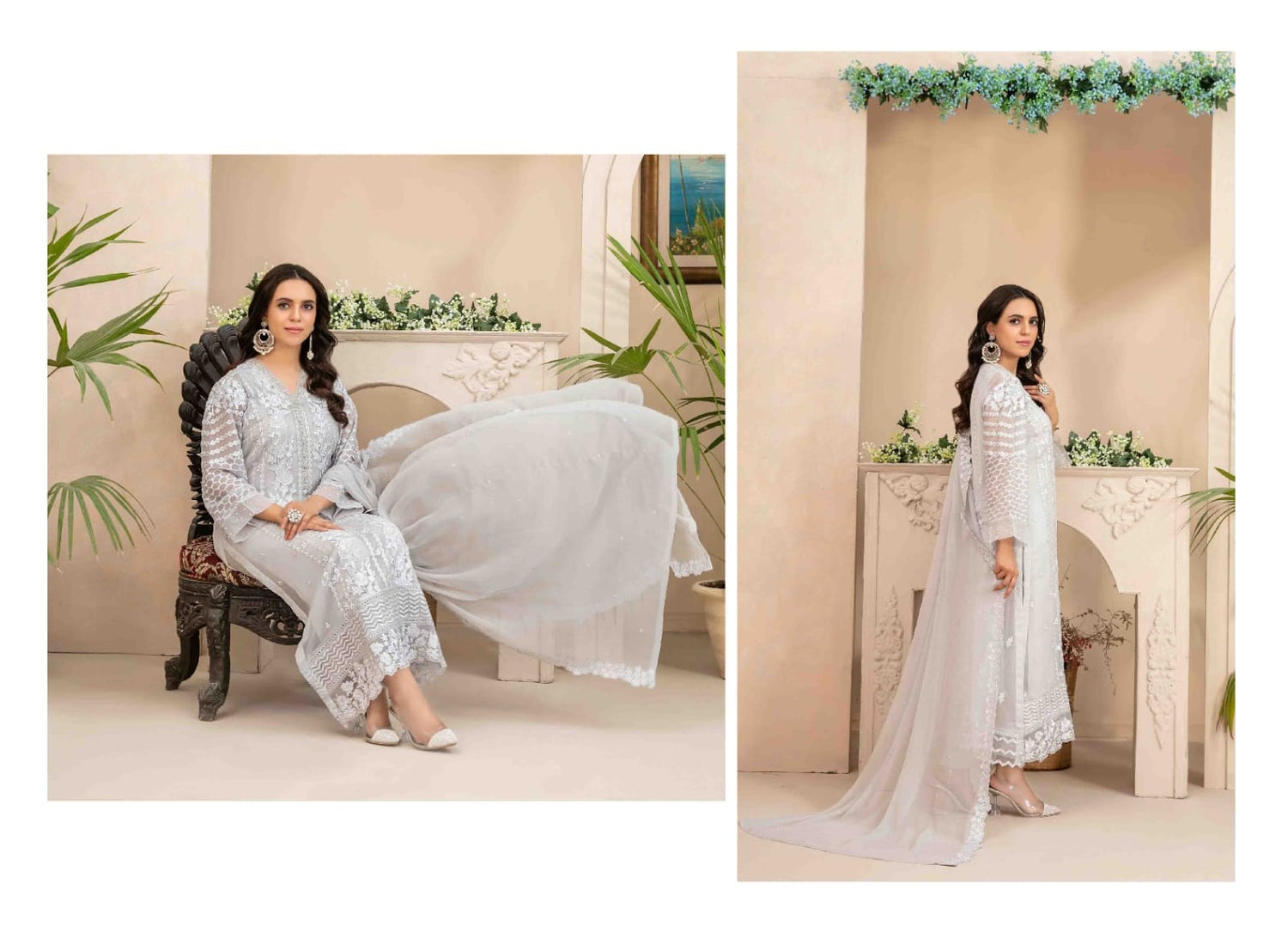 Embroidered HandWork, Embellished SEMI-STITCHED CHIFFON Shirt. Embroidered Ready Chiffon Dupatta. Plain Viscose Trouser.