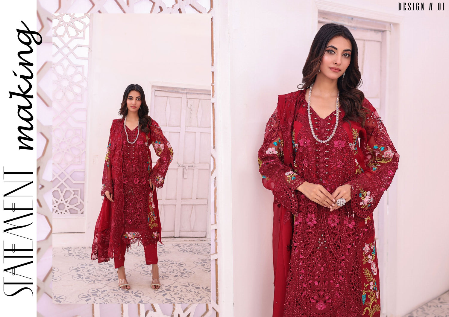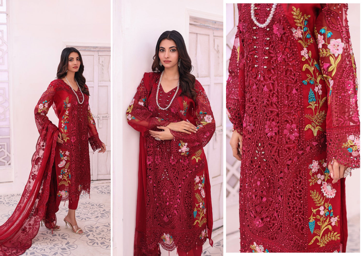 EMBROIDERED ORGANZA SEMI-STITCHED KAMEEZ