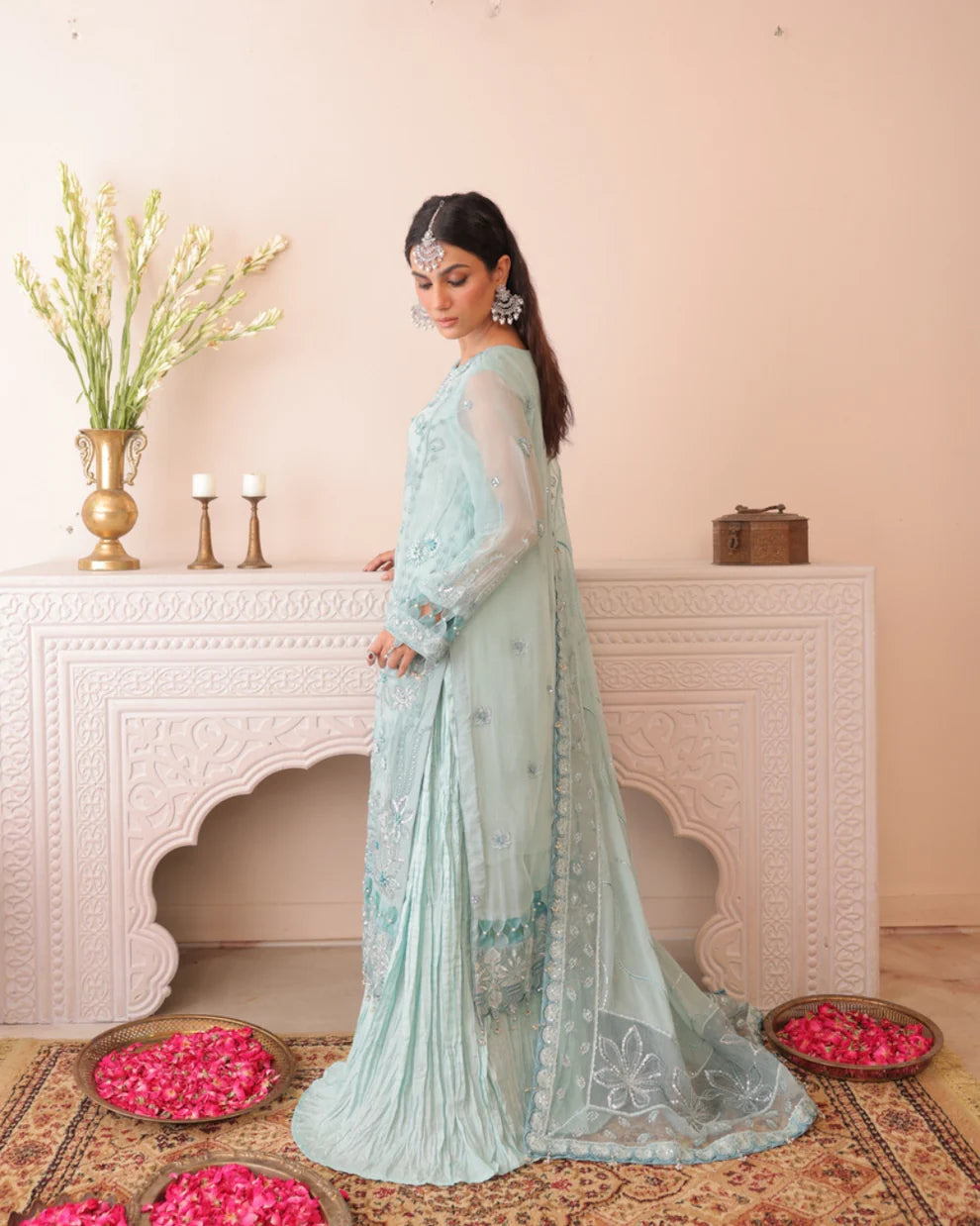 EMBROIDERED CHIFFON FOUR SIDE BODER READY