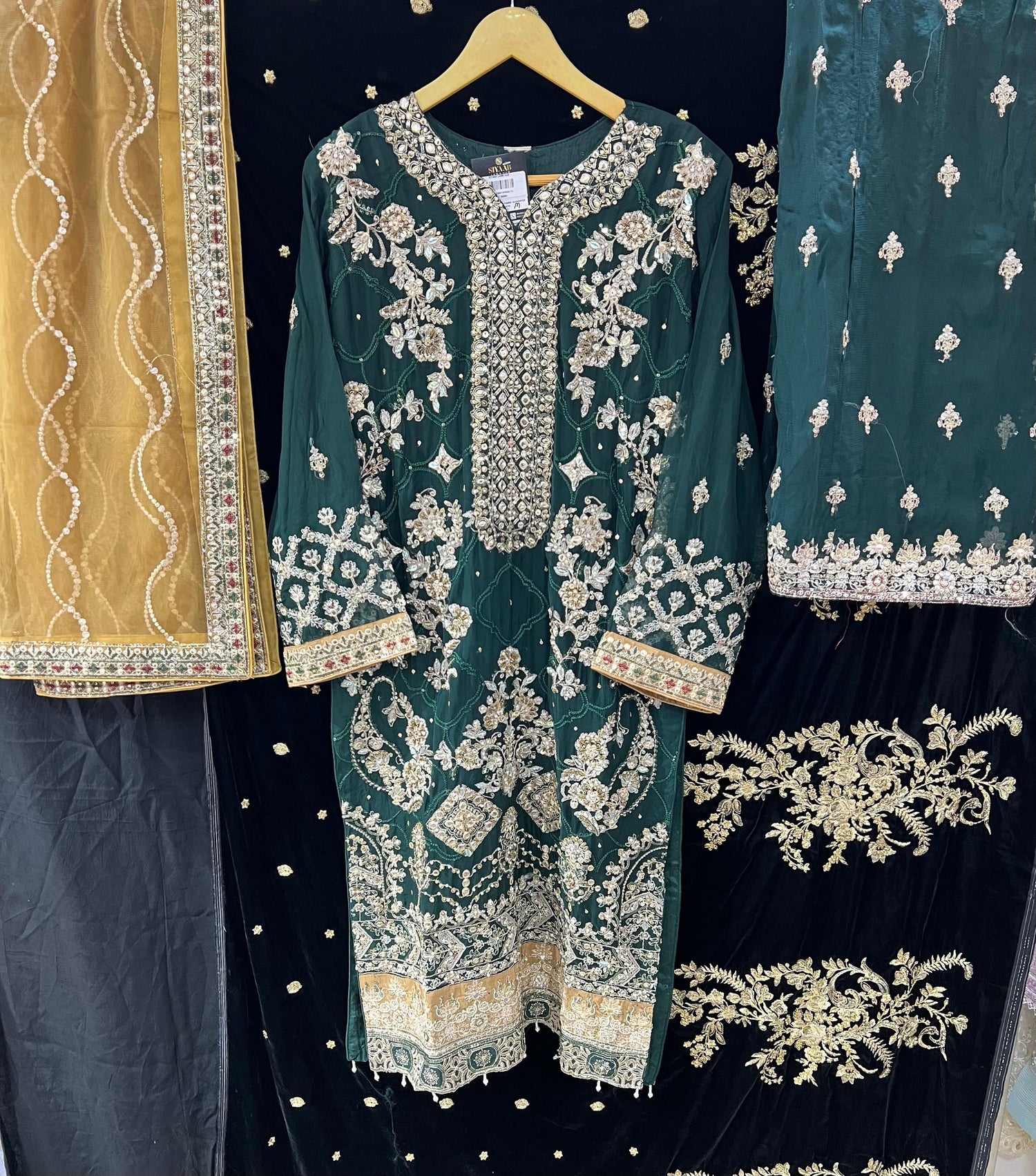 HEAVILY EMBROIDERED HAND WORK CHIFFON STITCHED KAMEEZ