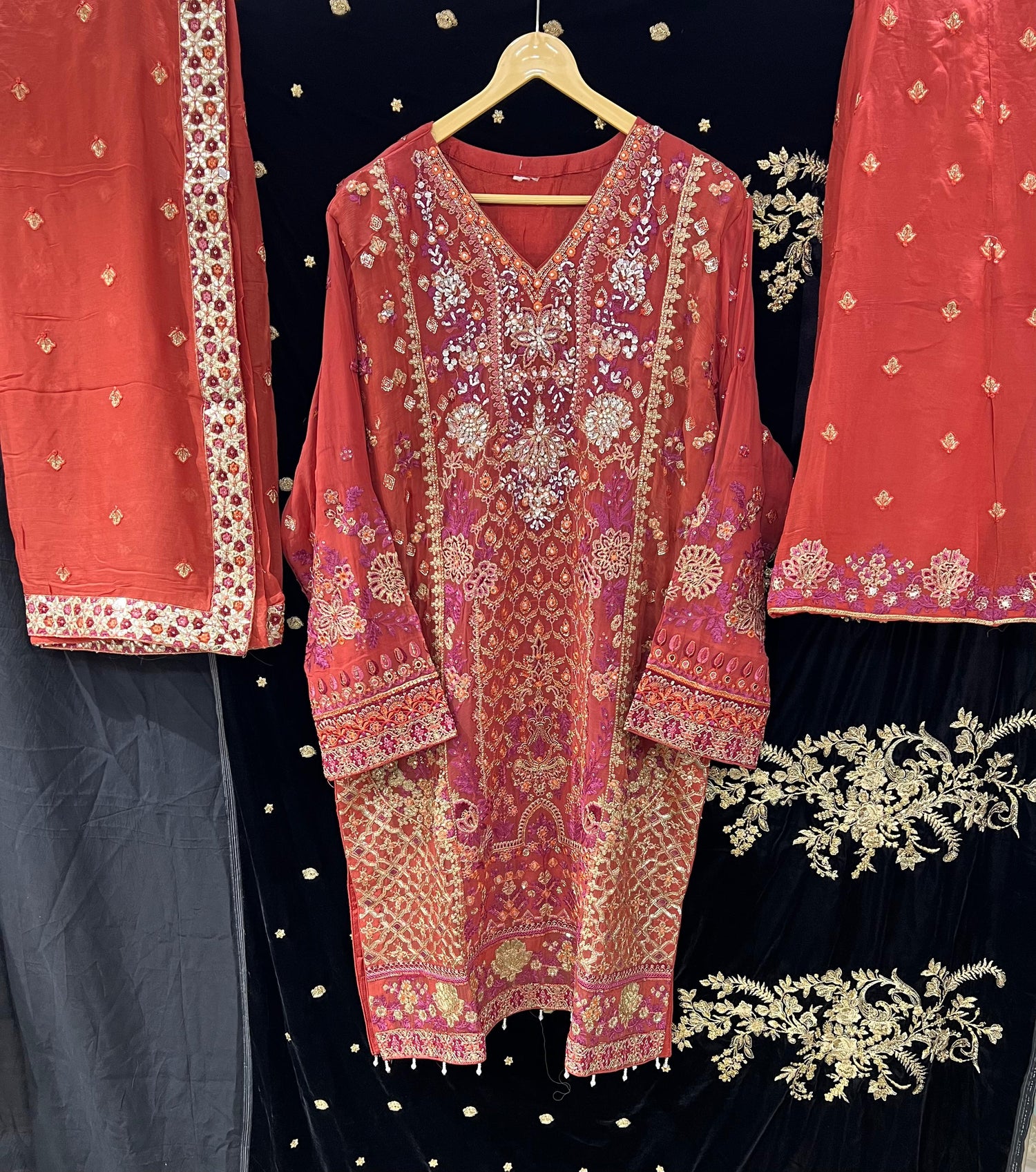 HEAVILY EMBROIDERED HAND WORK CHIFFON STITCHED KAMEEZ