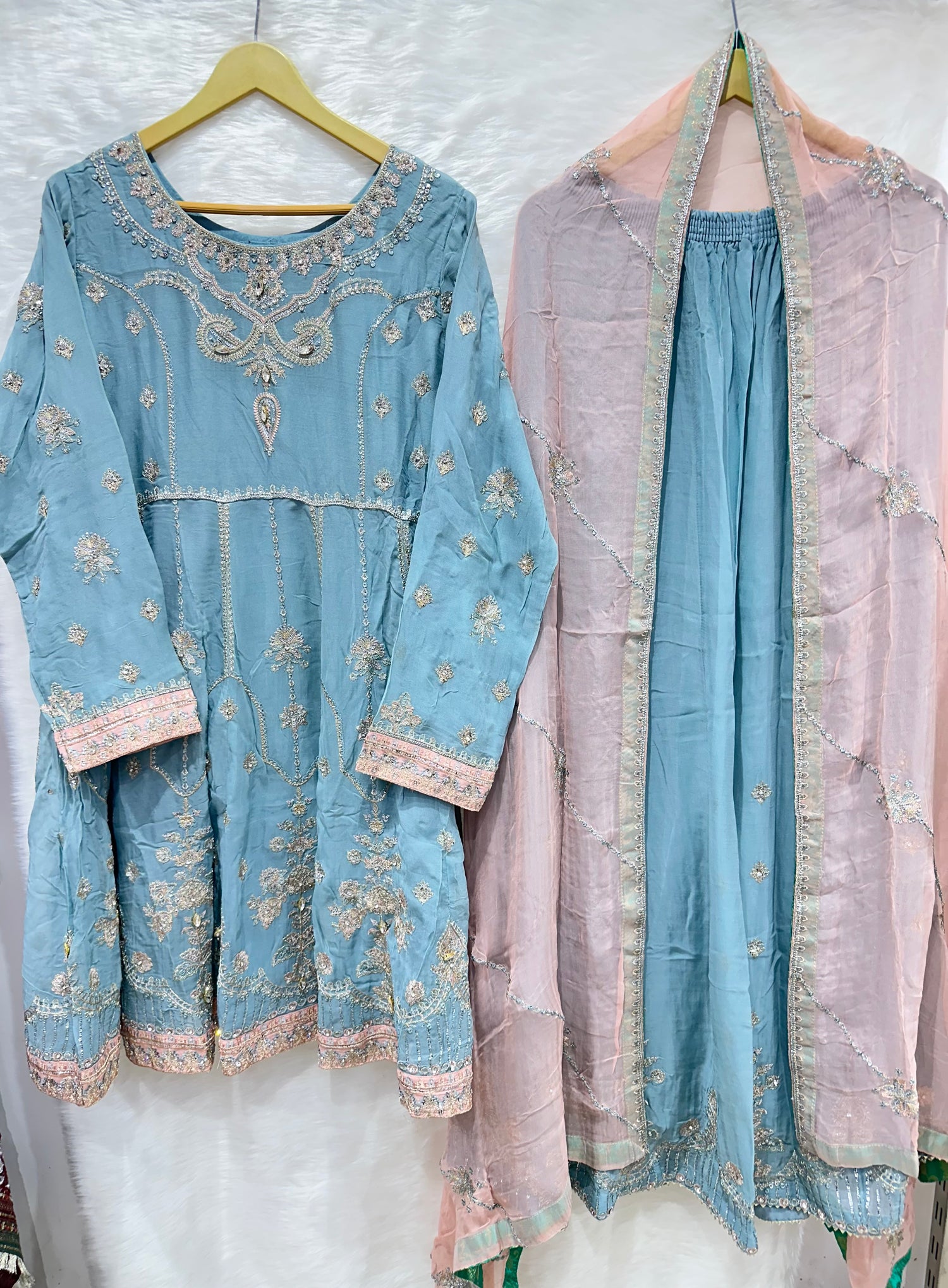 HEAVILY EMBROIDERED CHIFFON KAMEEZ