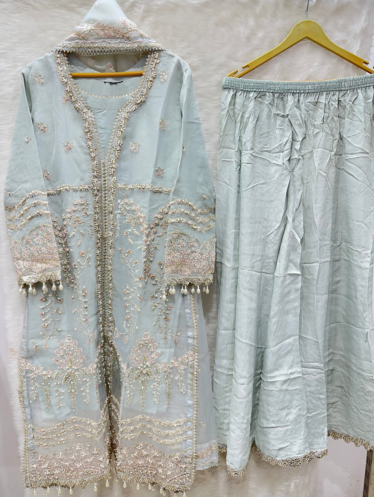 HEAVILY EMBROIDERED ORGANZA KAMEEZ