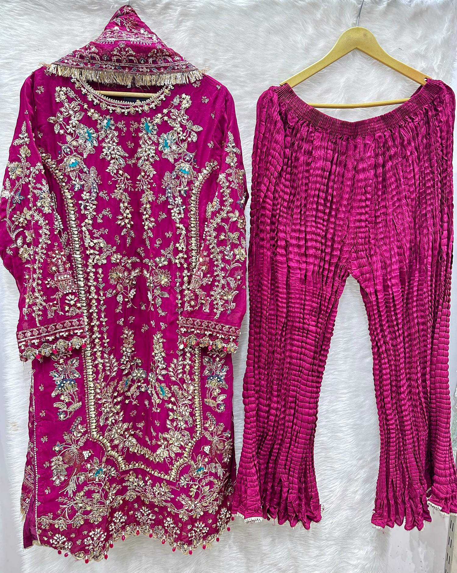 HEAVILY EMBROIDERED CHIFFON KAMEEZ