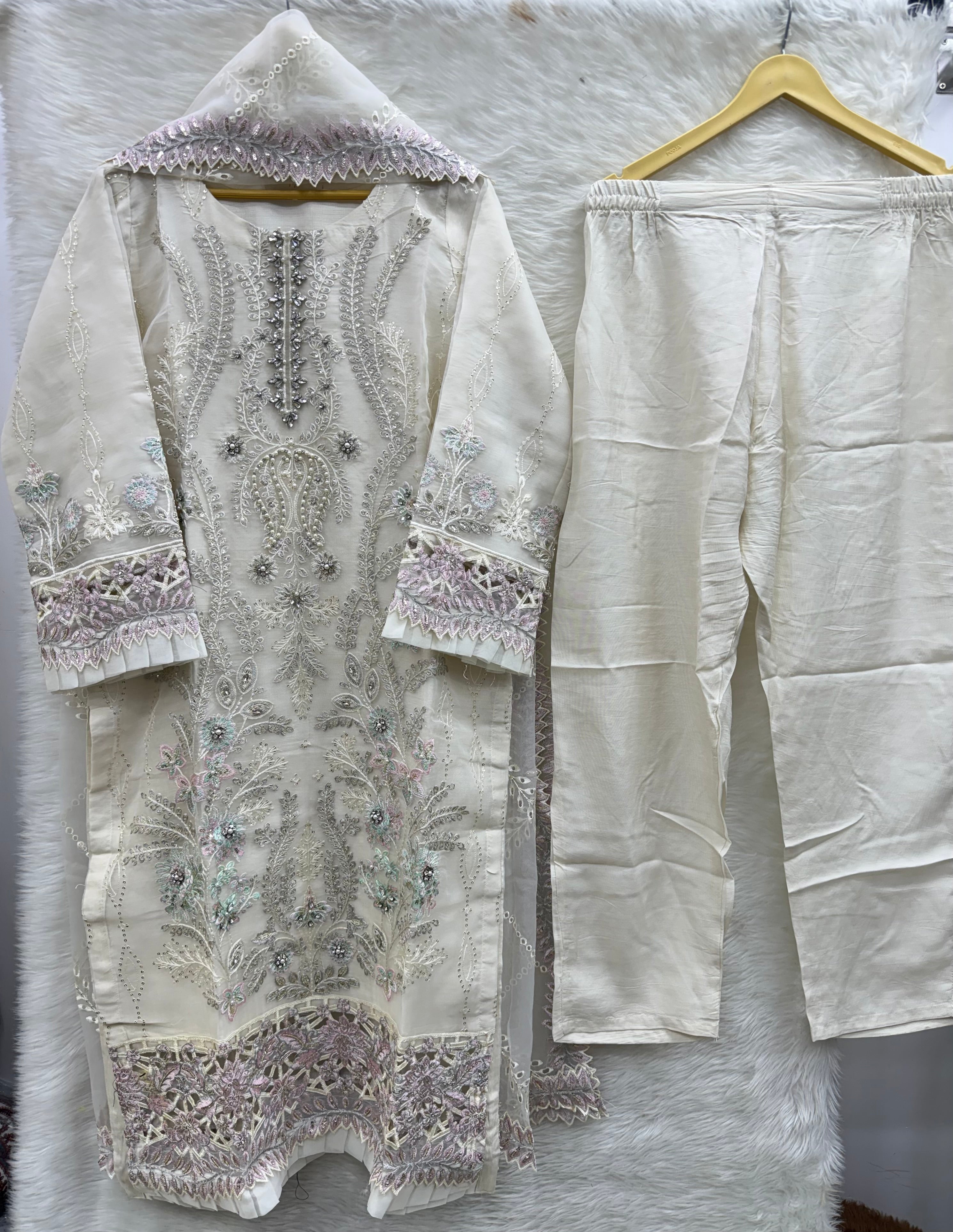HEAVILY EMBROIDERED ORGANZA KAMEEZ